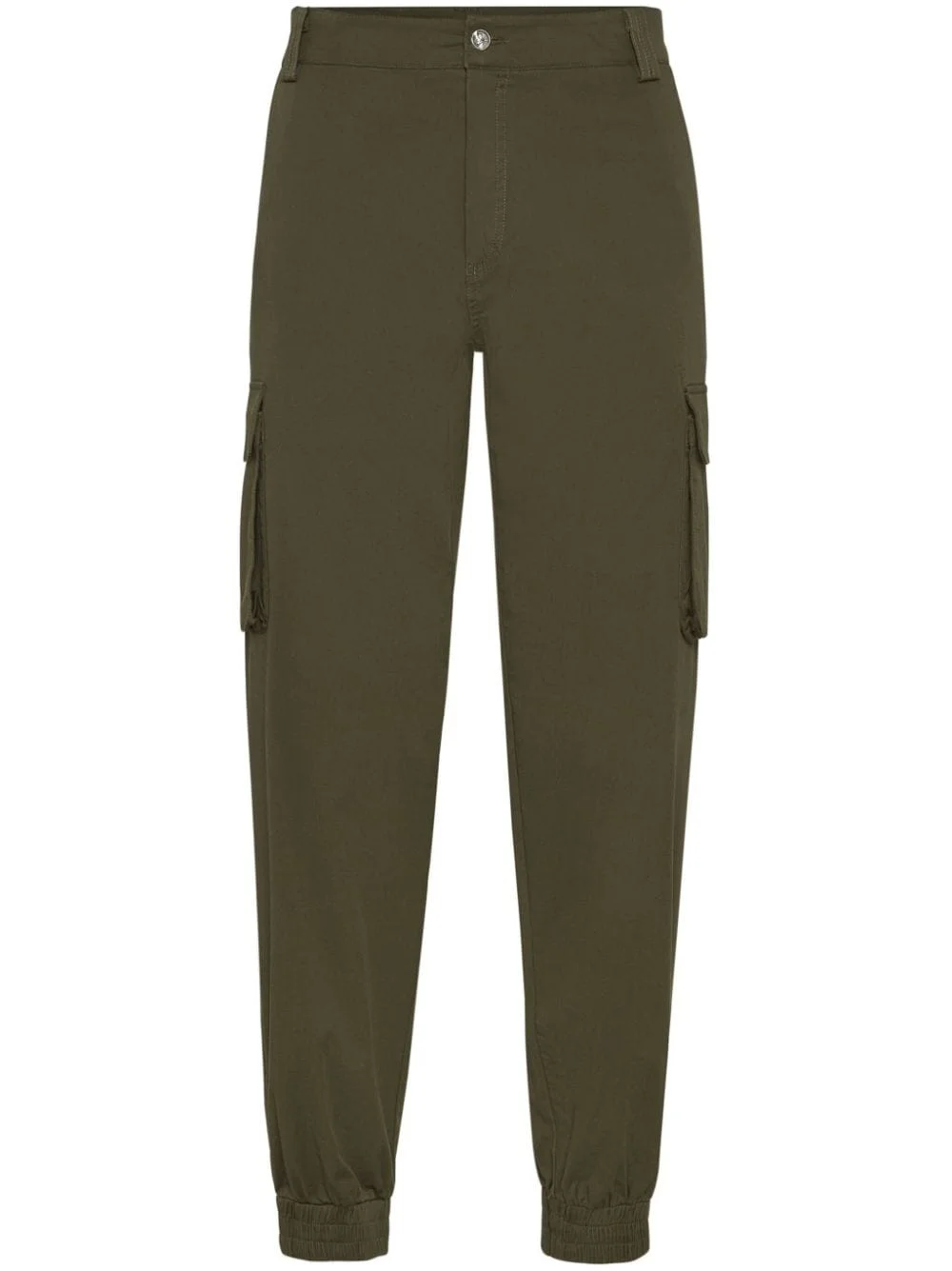 tapered cargo trousers Highlights - Khaki - Stretch-cotton - Concealed fly and button fastening - Mid-rise - Belt loops - Two side slit pockets - Two side cargo pockets - Logo plaque - Elasticated ankles - Applique logo - Two rear flap pockets - Tapered leg - Long length Made in Italy Composition Outer: Cotton 97%, Spandex/Elastane 3% Lining: Polyester 65%, Cotton 35%