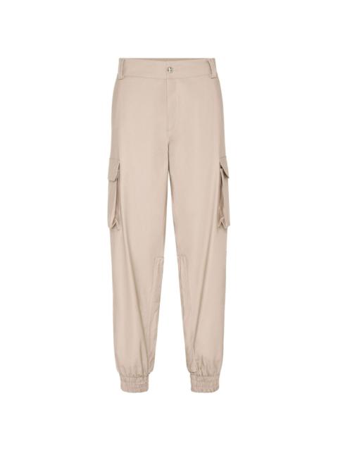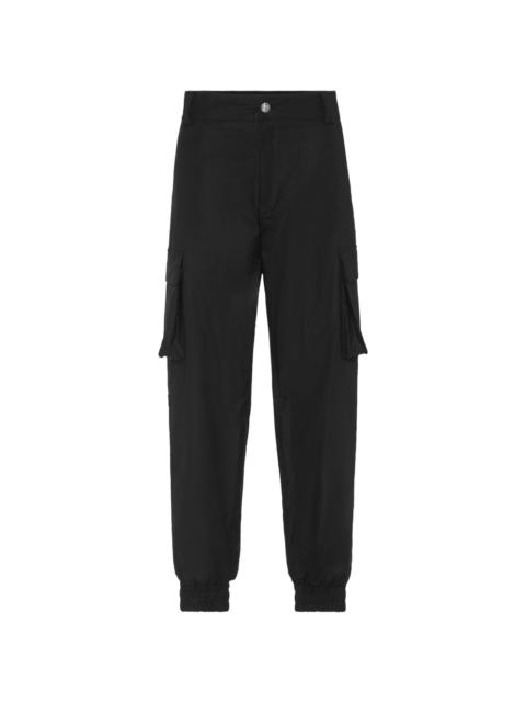tapered-leg cargo pants Highlights - Black - Cotton blend - Gabardine weave - Front button and zip fastening - Mid-rise - Belt loops - Slip pockets to the sides - Two side cargo pockets - Elasticated ankles - Logo patch to the rear - Two rear flap pockets - Applique logo Made in Italy Composition Outer: Cotton 97%, Elastane 3% Lining: Polyester 65%, Cotton 35%