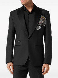 tattoo-applique single-breasted blazer Highlights - Black - Wool - Appliqu� detail - Peak lapels - Front button fastening - Two side welt pockets - Long sleeves - Contrast lining - Central rear vent - Straight hem Made in Italy Composition Wool 100%