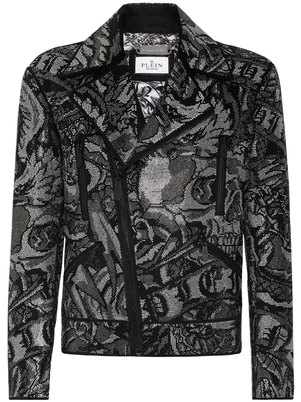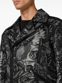 tattoo-print biker jacket Highlights - Black - All-over graphic print - Spread collar - Off-centre front zip fastening - Long sleeves - Cuff zips - Zip-fastening chest pocket - Two zip-fastening pockets - Straight hem Imported Composition Fabric 100%