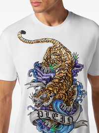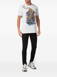 Tattoo-print cotton T-shirt Highlights - White/multicolour - Cotton - Glass crystal embellishment - Tattoo print - Logo print to the front - Applique logo - Crew neck - Short sleeves - Straight hem Made in Italy Composition Cotton 100%