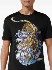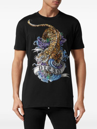 Tattoo-print cotton T-shirt Highlights - Black/multicolour - Cotton - Glass crystal embellishment - Tattoo print - Logo print to the front - Applique logo - Crew neck - Short sleeves - Straight hem Made in Italy Composition Cotton 100%