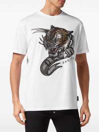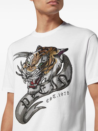 Tattoo-print cotton T-shirt Highlights - White/multicolour - Cotton - Glass crystal embellishment - Tattoo print - Logo print to the front - Applique logo - Crew neck - Short sleeves - Straight hem Imported Composition Cotton 100%