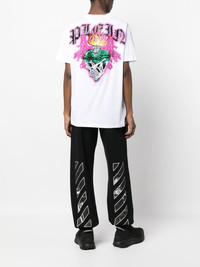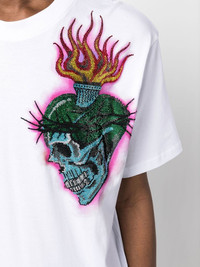 tattoo-print detail T-shirt Highlights - White/multicolour - Modal - Tattoo print - Logo patch at the chest - Logo print to the rear - Short sleeves - Round neck - Straight hem Imported Composition Modal 95%, Elastane 5% SIZE & FIT Model measurements Height 6 ft 1 in(1.85 m) Bust/Chest 31.88 in(81 cm) Hips 33.07 in(84 cm) Waist 26.77 in(68 cm) FittingInformation This piece fits true to size. We recommend you get your regular size Cut for a loose fit Made with a mid-weight stretch fabric Washing instructions Hand Wash