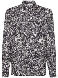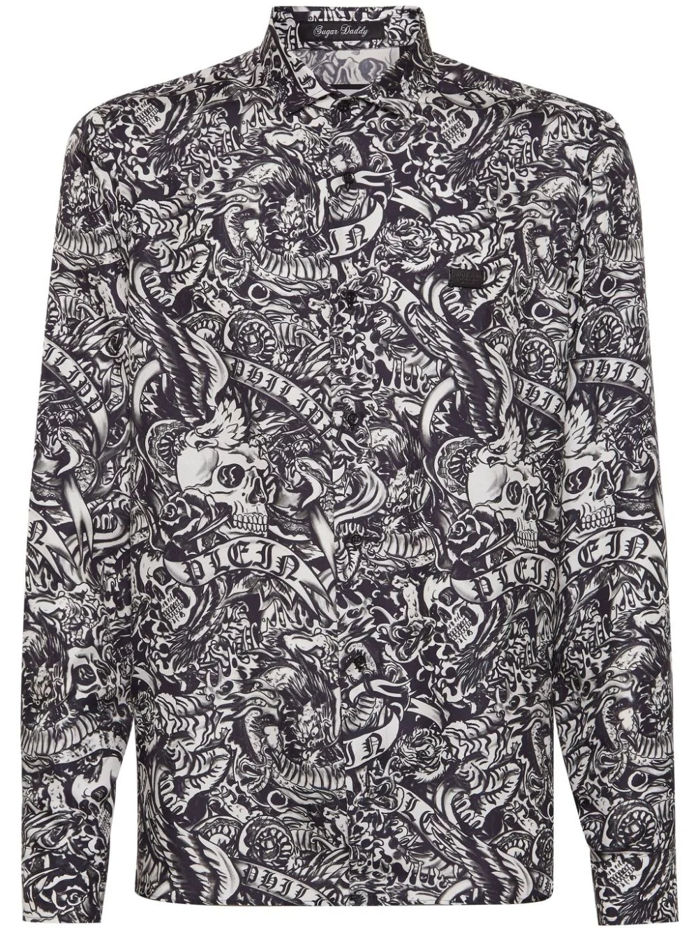 tattoo-print silk shirt Highlights - Black/white - Silk - Tattoo print - All-over logo print - Spread collar - Front button fastening - Long sleeves - Buttoned cuffs - Straight hem Made in Italy Composition Silk 100%
