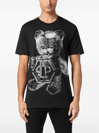 Teddy Bear-applique cotton shirt Highlights - Black - Cotton - Jersey texture - Teddy bear rhinestone applique detail - Round neck - Short sleeves - Straight hem Imported Composition Cotton 100%, Glass Fiber 100%