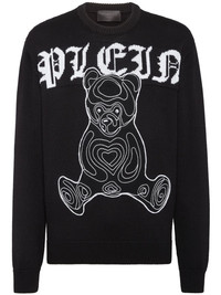 teddy bear-print wool jumper Highlights - Black - Wool - Intarsia-knit logo - Logo patch to the rear - Signature teddy bear motif - Crew neck - Long sleeves - Ribbed trim - Straight hem Made in Italy Composition Wool 100%