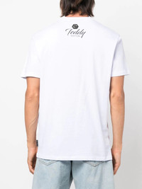 teddy print cotton T-shirt white cotton teddy bear print logo print to the front round neck short sleeves straight hem Imported Composition Cotton 100% SIZE & FIT Model measurements Height 6 ft 2 in(1.89 m) Bust/Chest 37.79 in(96 cm) Hips 37 in(94 cm) Waist 29.92 in(76 cm) FittingInformation This piece fits true to size. We recommend you get your regular size Cut for a relaxed fit Made with a mid-weight fabric Washing instructions Machine Wash