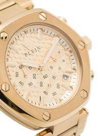 The Hexagon 42mm The Hexagon 42mm from Philipp Plein offers style and functionality in equal measure. It's crafted with a gold-tone hexagonal stainless steel case with a matching-hued honeycomb-patterned dial that exhibits chronograph counters and luminous accents, ideal in low-light conditions. Highlights - 42mm - Gold-tone - Stainless steel case - Stainless steel link bracelet - Mineral glass - Honeycomb pattern dial - Index dial - Index hands - Hexagonal face - Chronograph counters - Two chronograph pushers - Screw-down crown - Butterfly clasp fastening - Quartz movement - This item comes with a standard two-year warranty from the brand. Imported Composition glass 100%, stainless steel 100% SIZE & FIT Model measurements Height 6 ft 2 in(1.87 m) Bust/Chest 36.41 in(92.5 cm) Hips 35.43 in(90 cm) Waist 29.52 in(75 cm) Measurement CIRCUMFERENCE 0.82 in(2.1 cm) DIAMETER 0.17 in(0.4 cm) Thickness 0.04 in(0.1 cm) WIDTH 0.09 in(0.2 cm)
