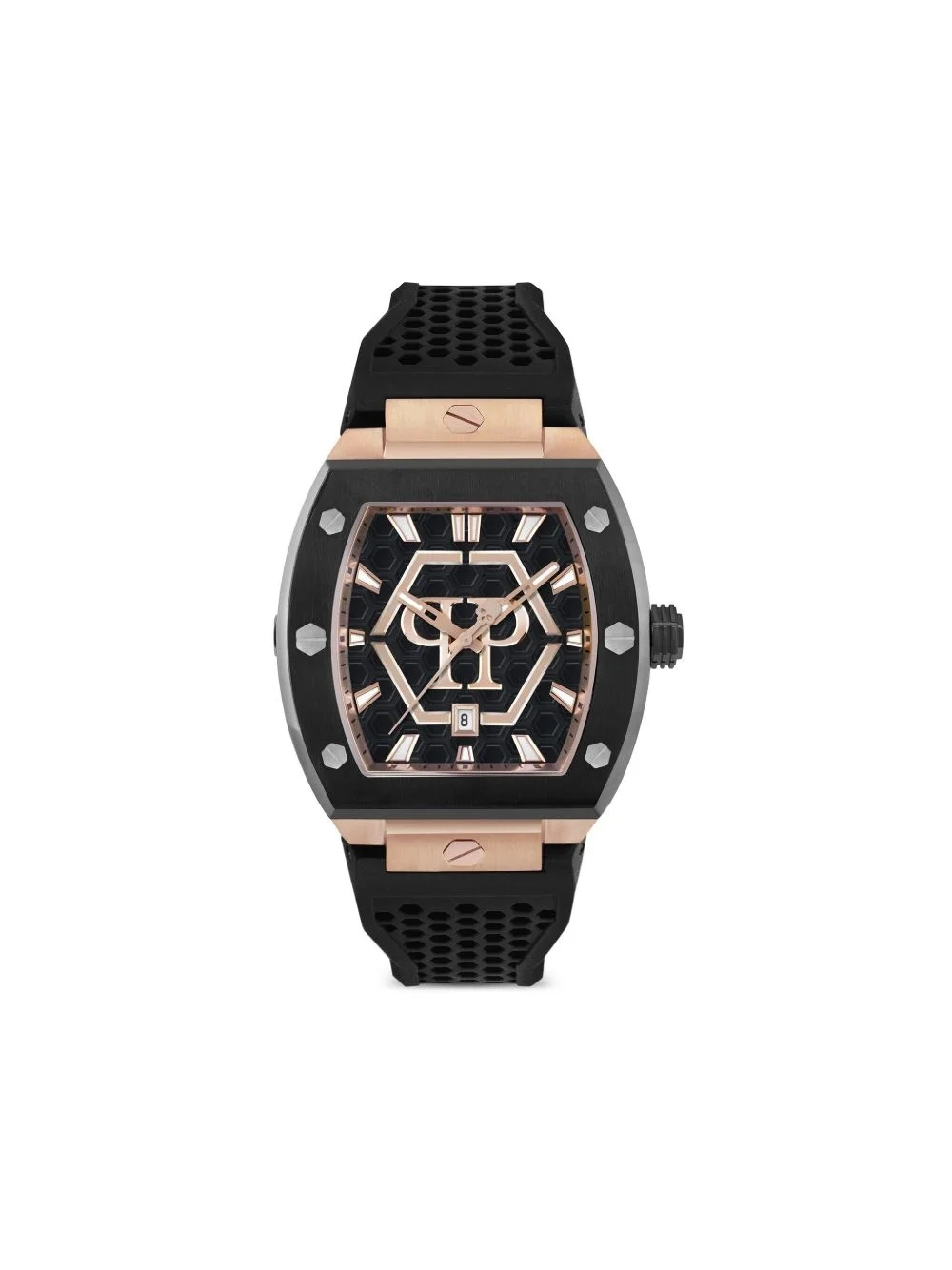 The Hexagon Phantom 44mm Highlights - 44mm - Black - Stainless steel - Cushion face - Baton dial - Baton hands - Date indication - Logo plaque - Quartz movement - Screw-down crown - Engraved case back - Buckle fastening - This item comes with a standard one-year warranty from the boutique. Imported Composition stainless steel 100%, Silicone 100%
