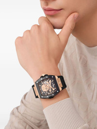 The $keleton 44mm Highlights - Stainless steel case - Automatic movement - Black - Baton dial - Baton hands - Skull applique - Engraved logo - Rectangular face - Screw-down crown - Tang-buckle fastening - Water resistance up to 50m/5 atm - This item comes with a standard two-year warranty from the brand. Imported Composition stainless steel 100%, Rubber 100%