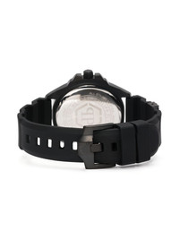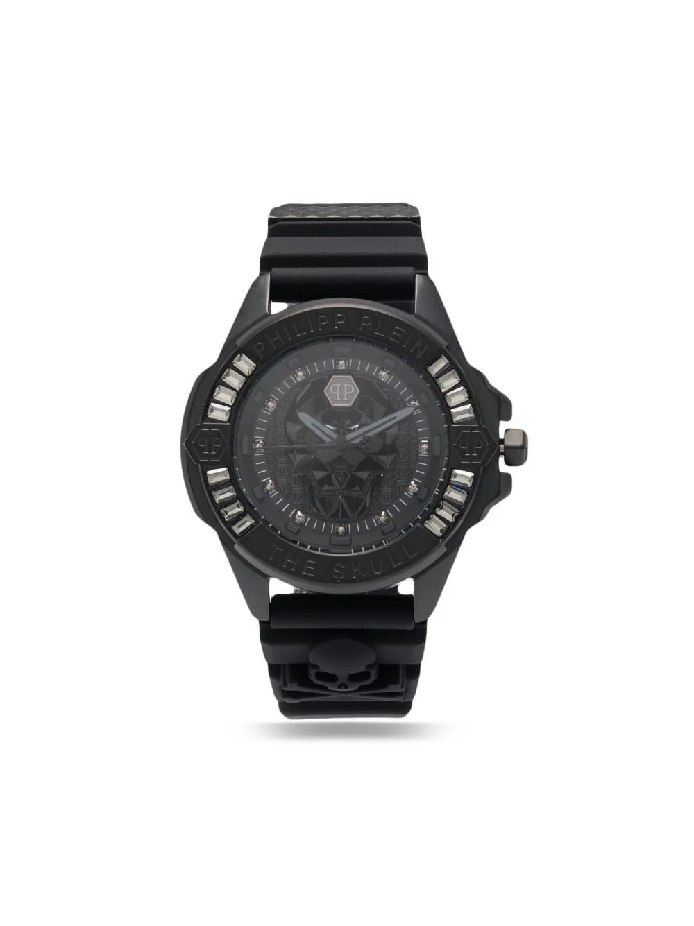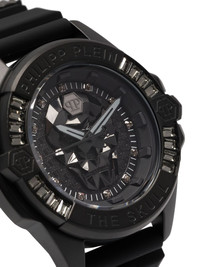 The $kull 43mm Echoing trademarks of Philipp Plein throughout its design, the $kull is an iconic member of the brand's watch family. This 43mm iteration is adorned with a raised skull at the dial, creating a 3D effect alongside sparkling crystal indexes. Meanwhile, the gothic-inspired motif is embossed throughout the strap for an extra recognisable touch. Highlights - Stainless steel - Quartz movement - Black - Skull motif - Round face - Crystal index - Baton hands - Raised logo detail - Screw-down crown - Crystal-encrusted bezel - Logo-embossed strap - Rubber strap - Tang-buckle fastening - This item comes with a standard two-year warranty from the brand. Imported Composition stainless steel 100%, Silicone 100% SIZE & FIT Model measurements Height 6 ft 1 in(1.85 m) Bust/Chest 35.82 in(91 cm) Hips 37.79 in(96 cm) Waist 29.13 in(74 cm) Measurement DIAMETER 1.69 in(4.3 cm) Minimum Length 6.69 in(17 cm) Thickness 0.43 in(1.1 cm) TOTAL LENGTH 9.05 in(23 cm) WIDTH 0.9 in(2.3 cm)