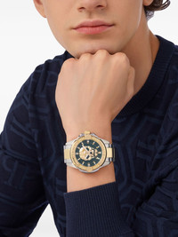 The $kull 44mm Highlights - 44mm - Silver/gold-tone - Stainless steel - Quartz movement - Green dial - Skull applique - Round face - Logo-engraved bezel - Sword hands - Screw-down crown - Two-tone bracelet - Logo-embossed strap - Concealed clasp fastening - This item comes with a standard two-year warranty from the brand. Imported Composition stainless steel 100% SIZE & FIT Measurement DIAMETER 1.73 in(4.4 cm)