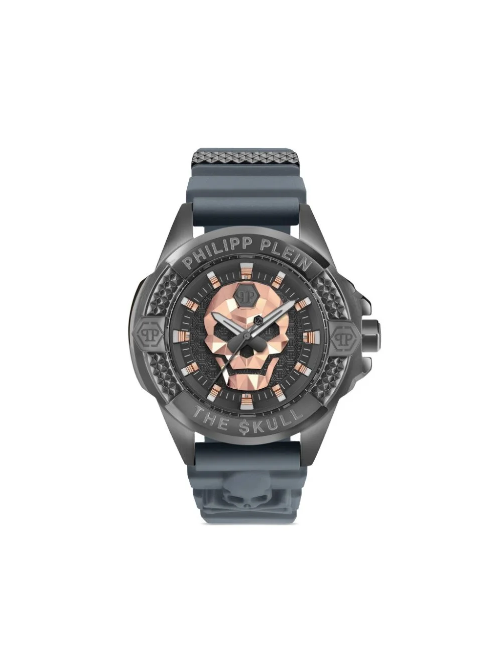 The $kull 44mm Highlights - 44mm - Stainless steel case - Grey - Baton dial - Arrow hands - Stud-encrusted bezel - Logo-engraved bezel - Push-down crown - Silicone bracelet - Pin-buckle fastening - Water resistance up to 50m/5 atm - This item comes with a standard two-year warranty from the brand. Imported Composition stainless steel 100%, Silicone 100% SIZE & FIT Measurement DIAMETER 1.73 in(4.4 cm) LENGTH 4.72 in(12 cm) Minimum Length 2.67 in(6.8 cm) Thickness 0.55 in(1.4 cm) WIDTH 0.86 in(2.2 cm)