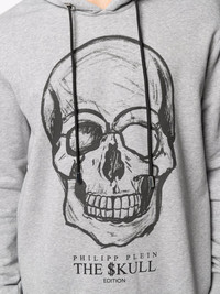 The Skull print hoodie grey/black cotton jersey fleece drawstring hood skull print to the front logo print to the front logo patch to the rear long sleeves ribbed cuffs straight hem ribbed hem Imported Composition Cotton 95%, Spandex/Elastane 5% SIZE & FIT Model measurements Height 6 ft 3 in(1.9 m) Bust/Chest 38.18 in(97 cm) Hips 37.79 in(96 cm) Waist 32.67 in(83 cm) FittingInformation This piece fits true to size. We recommend you get your regular size Cut for a relaxed fit Made with a mid-weight stretch fabric Washing instructions Machine Wash