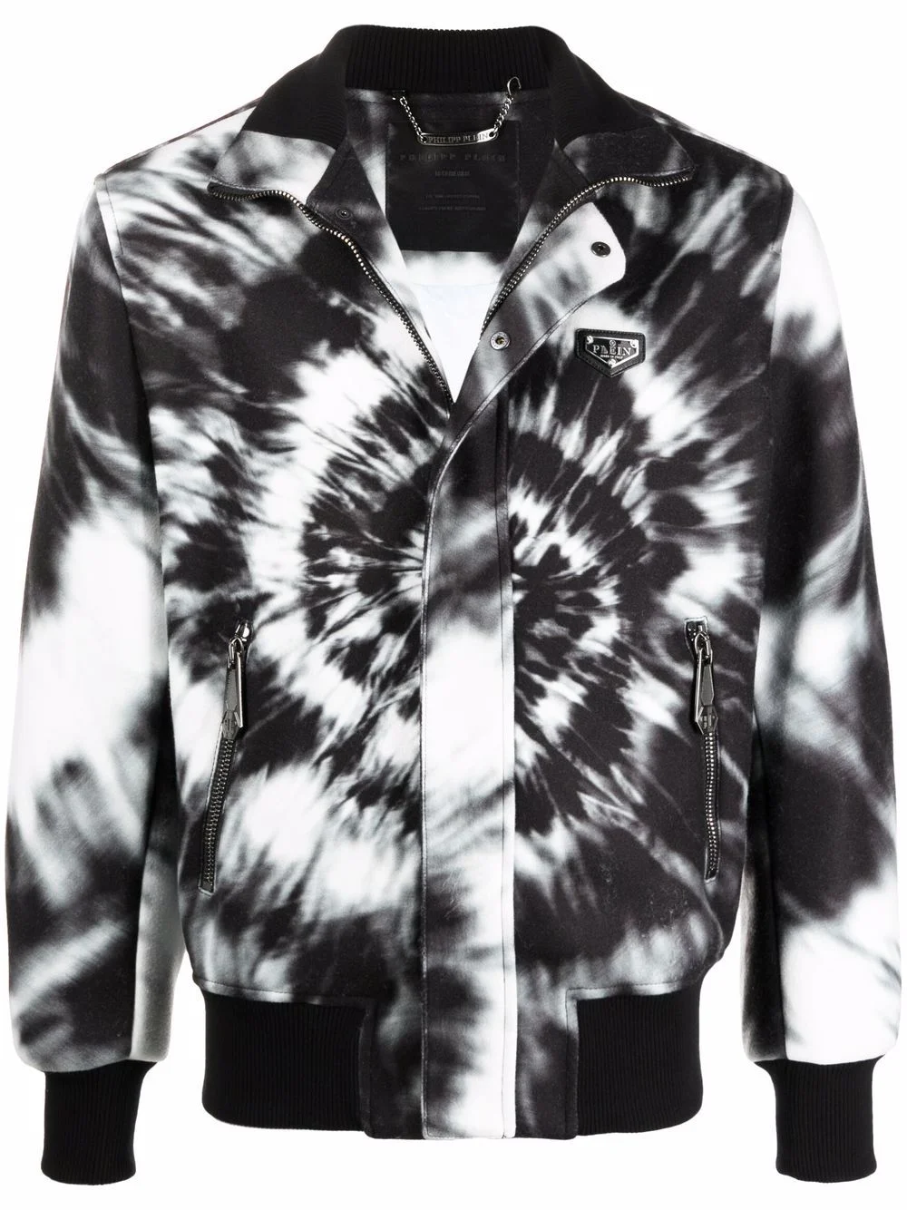 tie-dye print bomber jacket black mohair white tie-dye print two side inset pockets front zip fastening long sleeves elasticated cuffs elasticated hem Made in Italy Composition Outer: Polyester 100%, Cotton 90%, Spandex/Elastane 10% Lining: Polyester 100% SIZE & FIT Model measurements Height 6 ft 2 in(1.88 m) Bust/Chest 37 in(94 cm) Hips 40.94 in(104 cm) Waist 29.92 in(76 cm) FittingInformation This piece fits true to size. We recommend you get your regular size Cut for a loose fit Made with a mid-weight non-stretch fabric Washing instructions Dry Clean Only