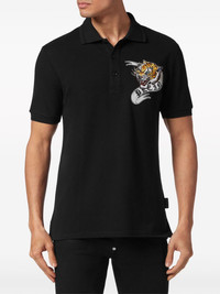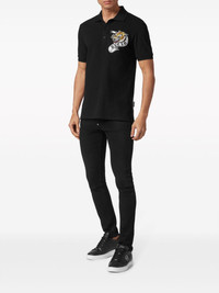 tiger-appliqué cotton polo shirt