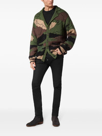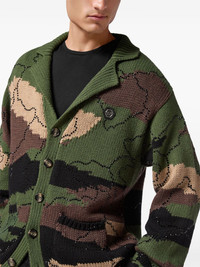V-neck intarsia-knitted cardigan Highlights - Green - Wool blend - Intarsia knit - Camouflage pattern - Logo patch to the rear - V-neck - Front button fastening - Long sleeves - Ribbed cuffs and hem Made in Italy Composition Wool 66%, Viscose 16%, Polyamide 12%, Cashmere 6%