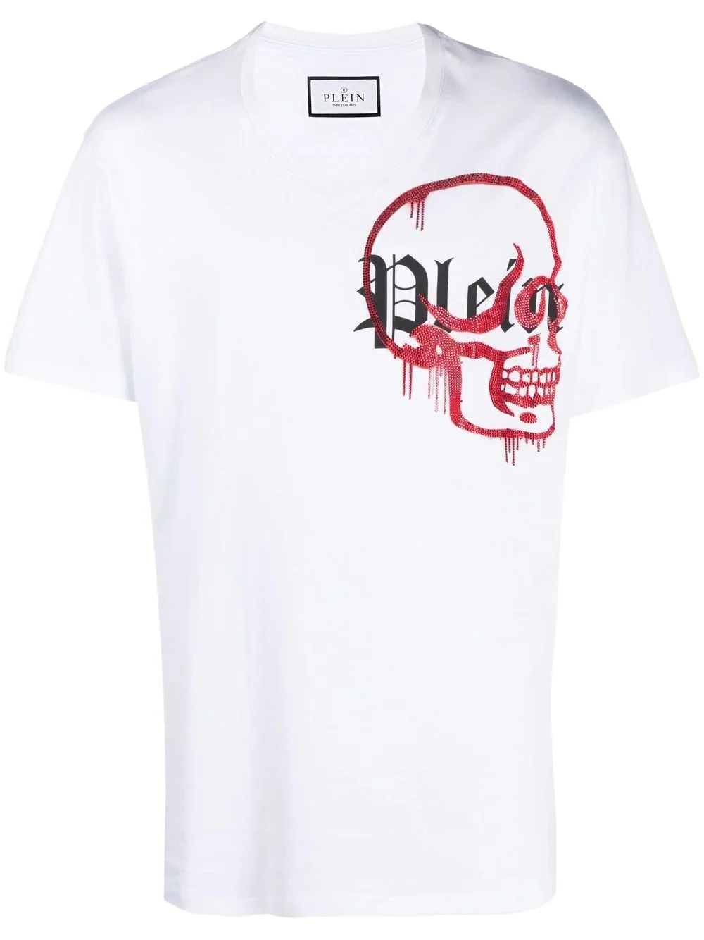 V-neck logo T-shirt white cotton logo print at the chest V-neck short sleeves Imported Composition Cotton 100% SIZE & FIT Model measurements Height 6 ft 2 in(1.87 m) Bust/Chest 36.41 in(92.5 cm) Hips 35.43 in(90 cm) Waist 29.52 in(75 cm) FittingInformation Designed to be unstructured, offering a loose fit throughout Made from a midweight non-stretch fabric, this piece offers minimal elasticity when worn This piece fits true to size – take your usual size Washing instructions Hand Wash