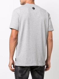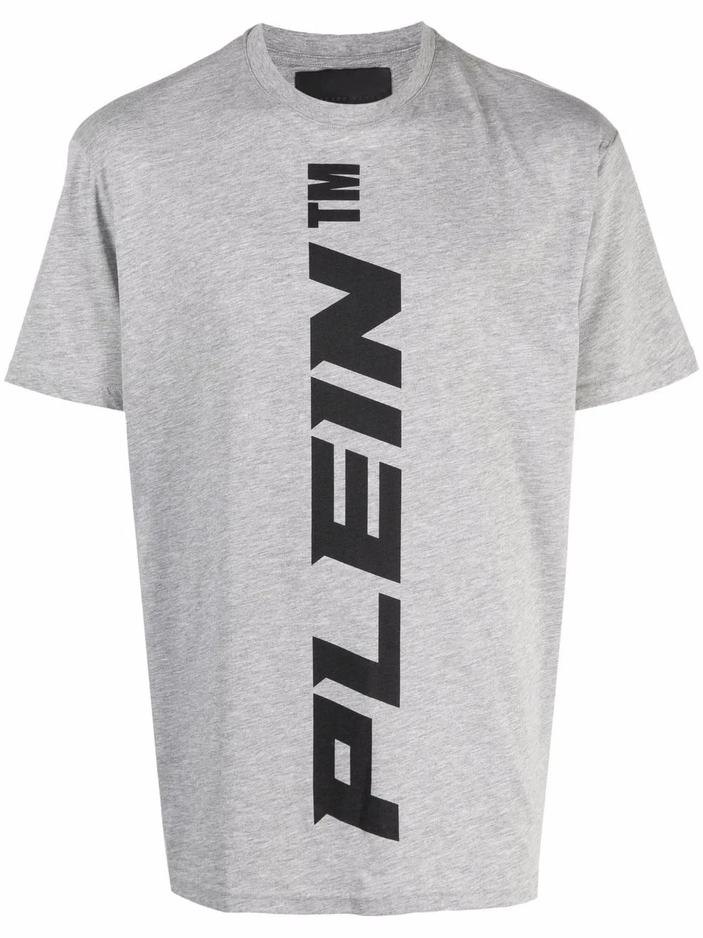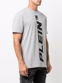 vertical logo print T-shirt grey cotton blend logo print to the front logo patch to the rear round neck short sleeves straight hem Imported Composition Polyester 70%, Cotton 30% SIZE & FIT Model measurements Height 6 ft 1 in(1.85 m) Bust/Chest 37.79 in(96 cm) Hips 37.4 in(95 cm) Waist 30.7 in(78 cm) FittingInformation This piece fits true to size. We recommend you get your regular size Cut for a relaxed fit Made with a mid-weight fabric Washing instructions Hand Wash