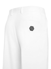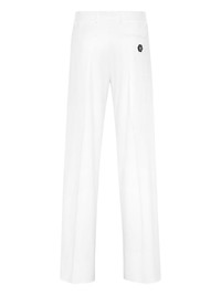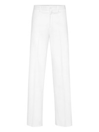 wide-leg trousers Highlights - White - Front button and zip fastening - Belt loops - Two side slash pockets - Rear jetted pocket Made in Italy Composition Outer: Polyester 55%, Wool 45% Lining: Polyester 65%, Cotton 35%