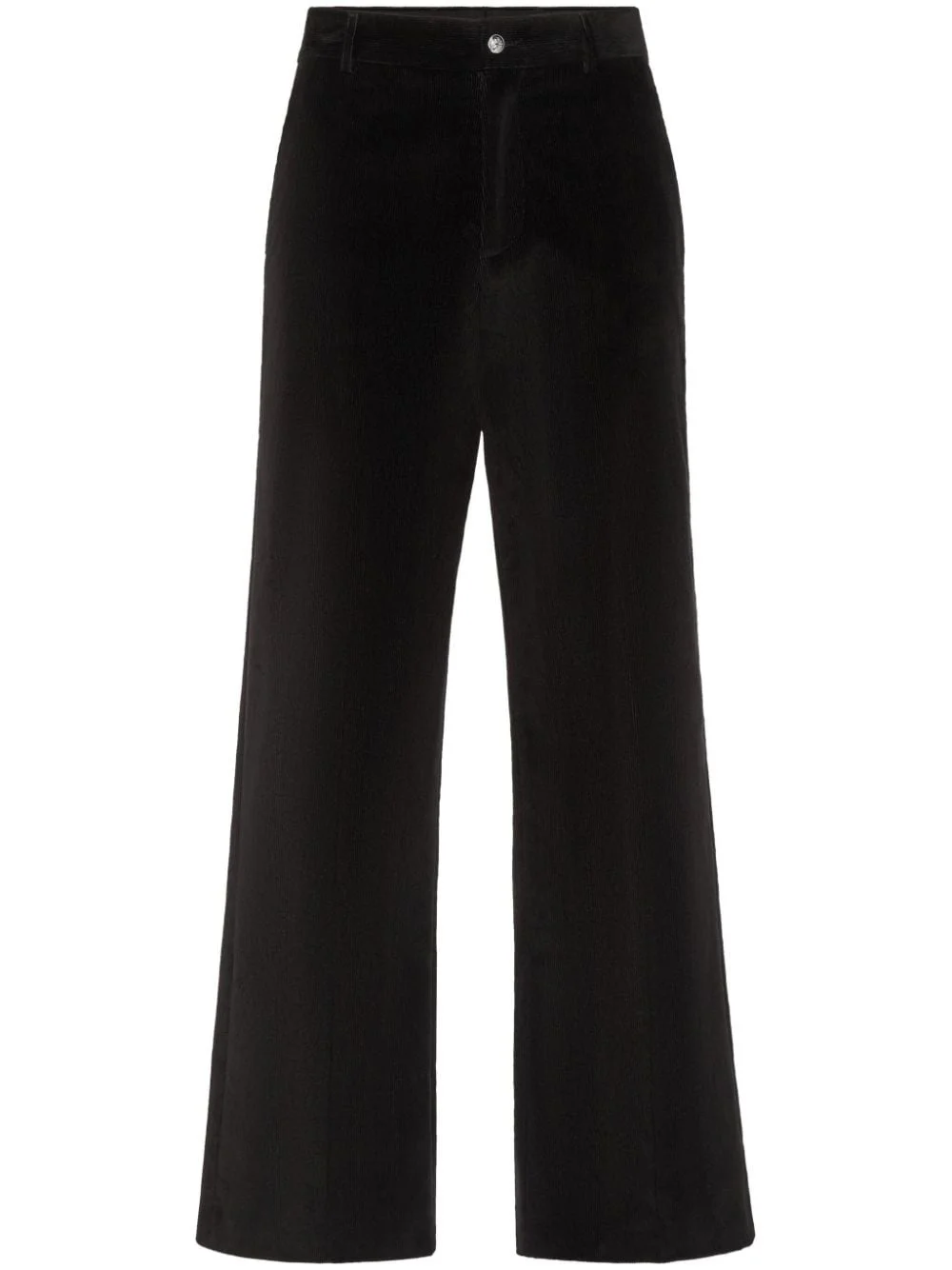wide-leg velvet trousers Highlights - Black - Cotton blend - Velvet - Wide leg - Front button and zip fastening - Mid-rise - Belt loops - Slip pockets to the sides - Logo patch to the rear Made in Italy Composition Lining: Polyester 65%, Cotton 35% Outer: Cotton 98%, Elastane 2%