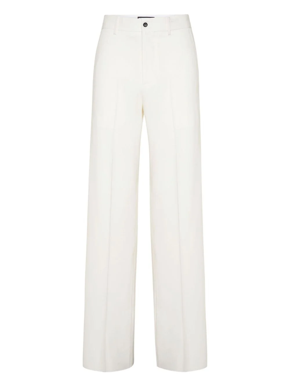 wool wide-leg trousers Highlights - White - Button fly fastening - Pressed crease - Slip pockets to the sides - Belt loops Made in Italy Composition Lining: Polyester 65%, Cotton 35% Outer: Polyester 55%, Wool 45%
