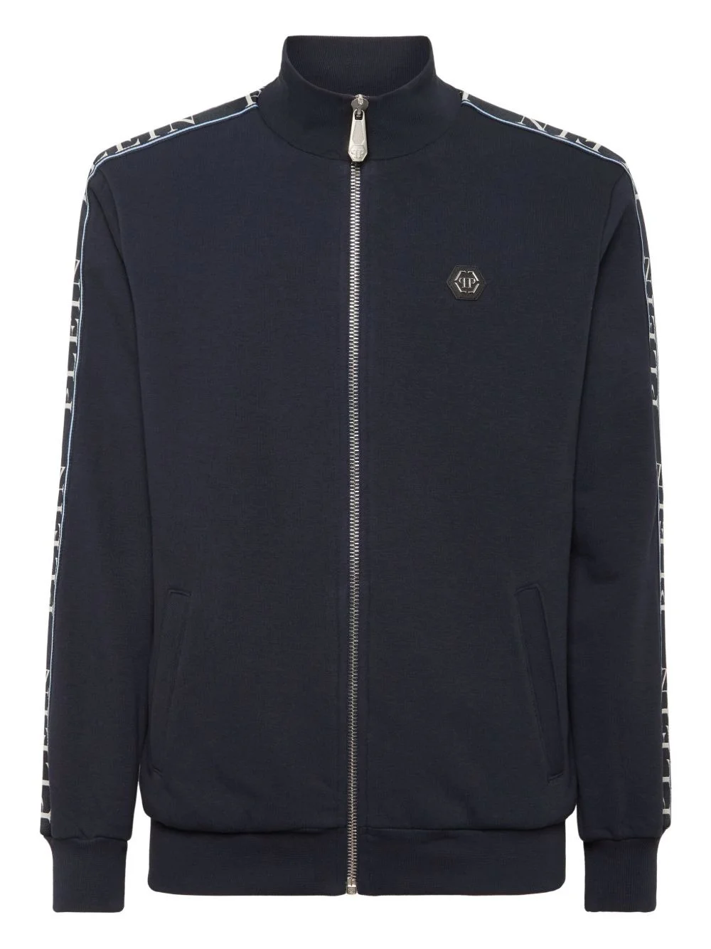 zip-up cotton sweatshirt Highlights - Dark-blue - Zip fastening - High neck - Logo patch - Tape detail - Long sleeves Imported Composition Cotton 100%, Polyester 97%, Elastane 3% Washing instructions Read Manufacturer Guidelines