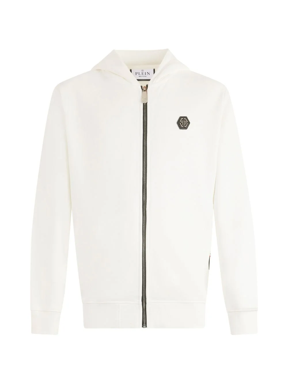 zip-up long-sleeve hoodie Highlights - Off white - Logo applique - Zip fastening Made in Italy Composition Cotton 100% Washing instructions Read Manufacturer Guidelines