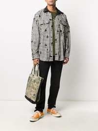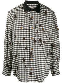 gingham shirt with all-over tree embroidery