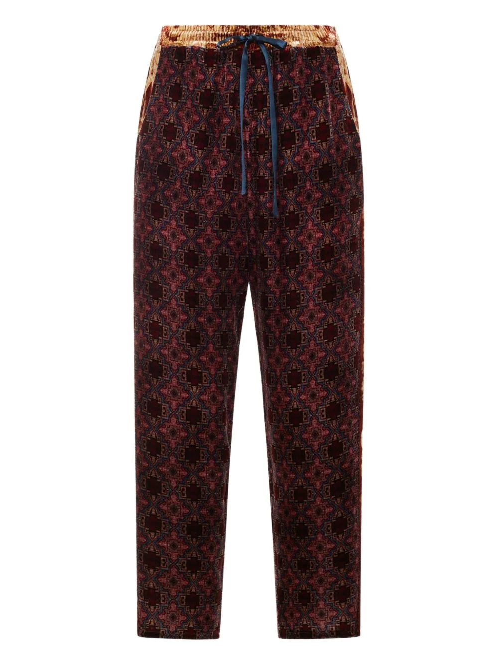 Aloe trousers Highlights - Red - Geometric pattern - Drawstring waist - Side panels - Straight leg Imported Composition Viscose 82%, Silk 18% Washing instructions Read Manufacturer Guidelines