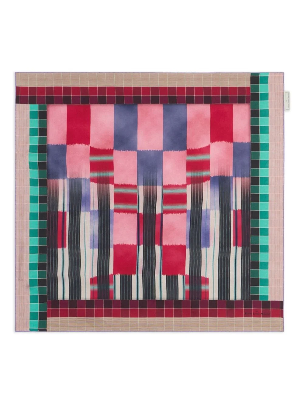 Aloeuw checkered-pattern scarf Highlights - Multicolour - Red squares - Grid pattern - Green border - Pink squares - Black stripes Imported Composition Silk 100% SIZE & FIT Measurement LENGTH 26.37 in(67 cm) WIDTH 26.37 in(67 cm) Washing instructions Read Manufacturer Guidelines