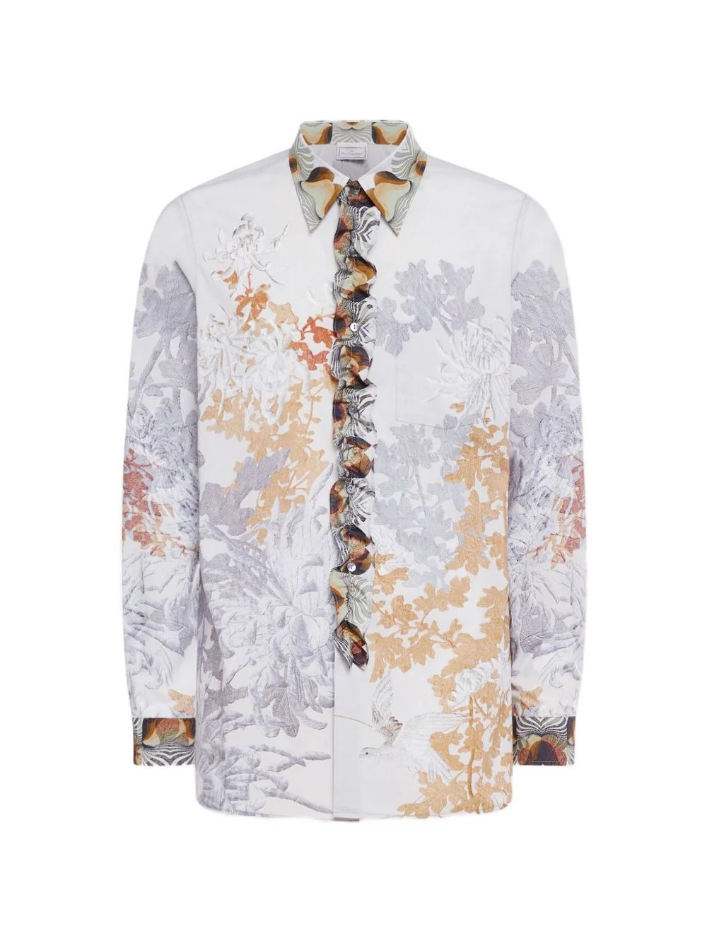 Diomede ruffled floral-print shirt Highlights - White - Floral print - Ruffled detail - Long sleeved - Tailored fit - Button fastening Made in Italy Composition Cotton 100% Washing instructions Read Manufacturer Guidelines