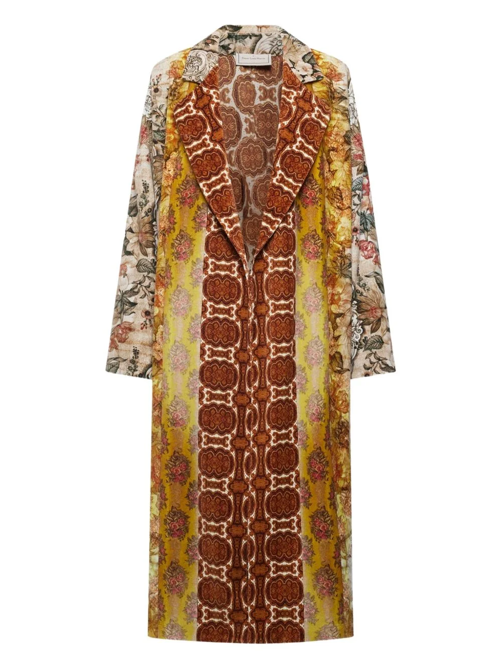 floral-patterned lapel coat Highlights - Beige - Floral print - Patterned panels - Long sleeves - Notched lapel - Open front Imported Composition Fabric 100% Washing instructions Read Manufacturer Guidelines