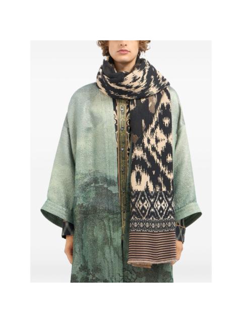 geometric-pattern scarf Highlights - Beige - Geometric pattern - Fringed edges - Rectangular shape Imported Composition Wool 100% SIZE & FIT Measurement LENGTH 74.8 in(190 cm) WIDTH 51.18 in(130 cm) Washing instructions Read Manufacturer Guidelines