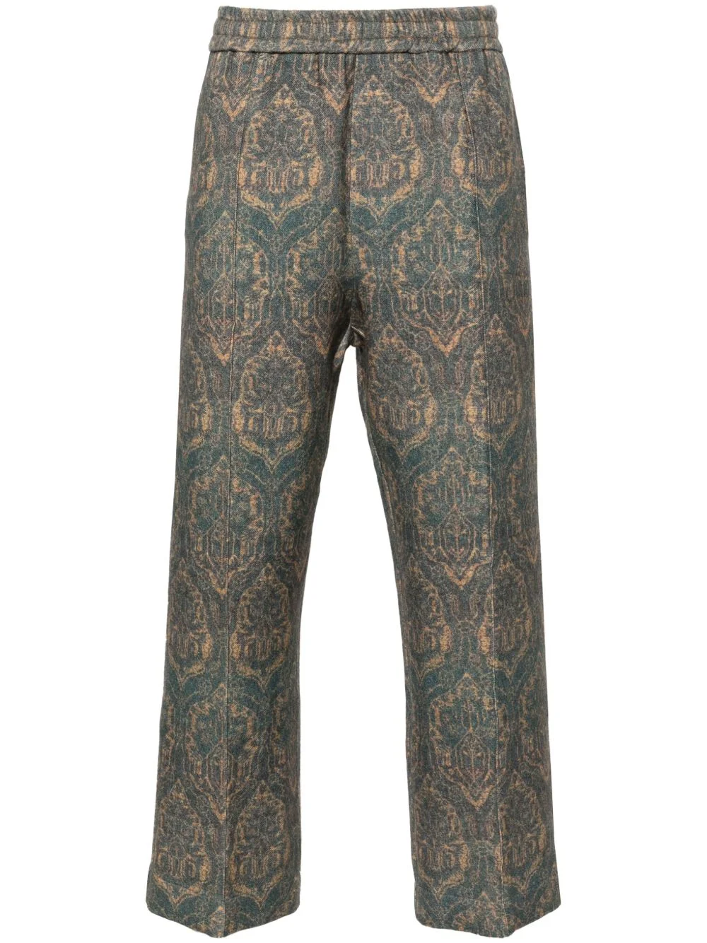 graphic-print trousers Highlights - Cerulean blue/light brown - Wool - Flannel - All-over graphic print - Elasticated waistband with internal drawstring - Two side inset pockets - Front exposed-seam detailing - Straight leg - Ankle-length Made in Italy Composition Wool 100% SIZE & FIT Model measurements Height 6 ft 2 in(1.87 m) Bust/Chest 38.18 in(97 cm) Hips 36.61 in(93 cm) Waist 29.13 in(74 cm) FittingInformation Designed with a flared hem, offering a slim fit over the leg, widening towards the hem Adjust this piece’s waistband to your preference using the drawstring Made from a midweight non-stretch fabric Washing instructions Dry Clean Only