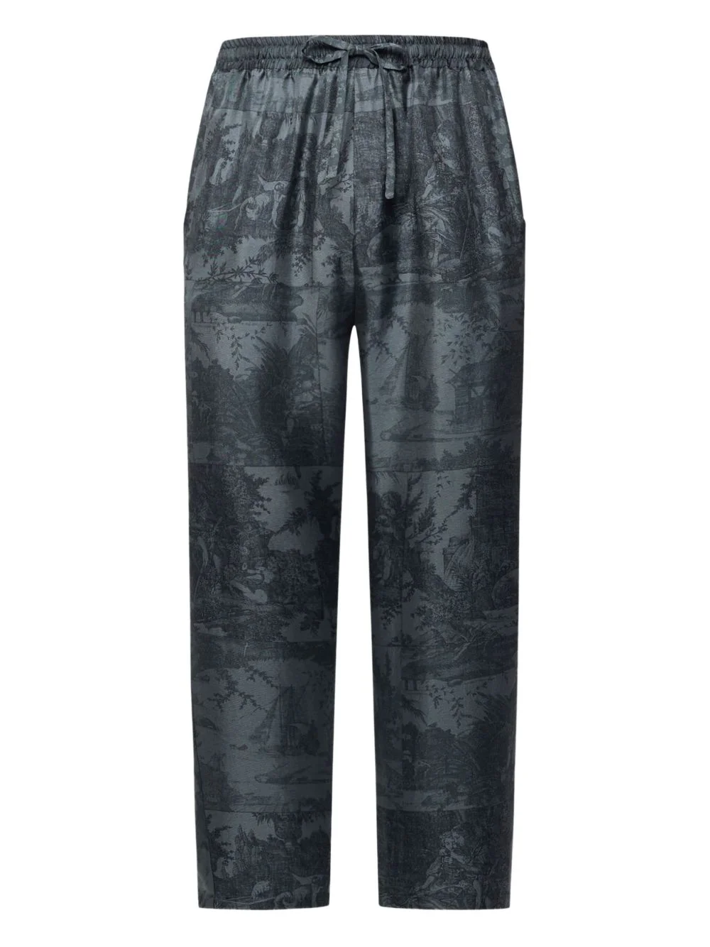 landscape-print drawstring-waist trousers Highlights - Dark grey - Landscape print - Drawstring fastening Imported Composition Silk 100% Washing instructions Read Manufacturer Guidelines