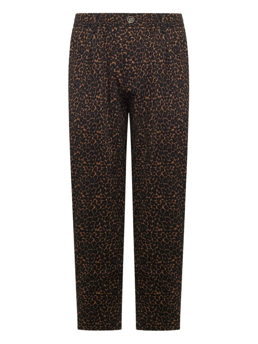 leopard-print pleated trousers Highlights - Brown - Leopard print - Pleated front - Button fastening - Straight leg - Mid-rise waist Imported Composition Virgin Wool 77%, Polyamide 19%, Elastane 4% Washing instructions Read Manufacturer Guidelines
