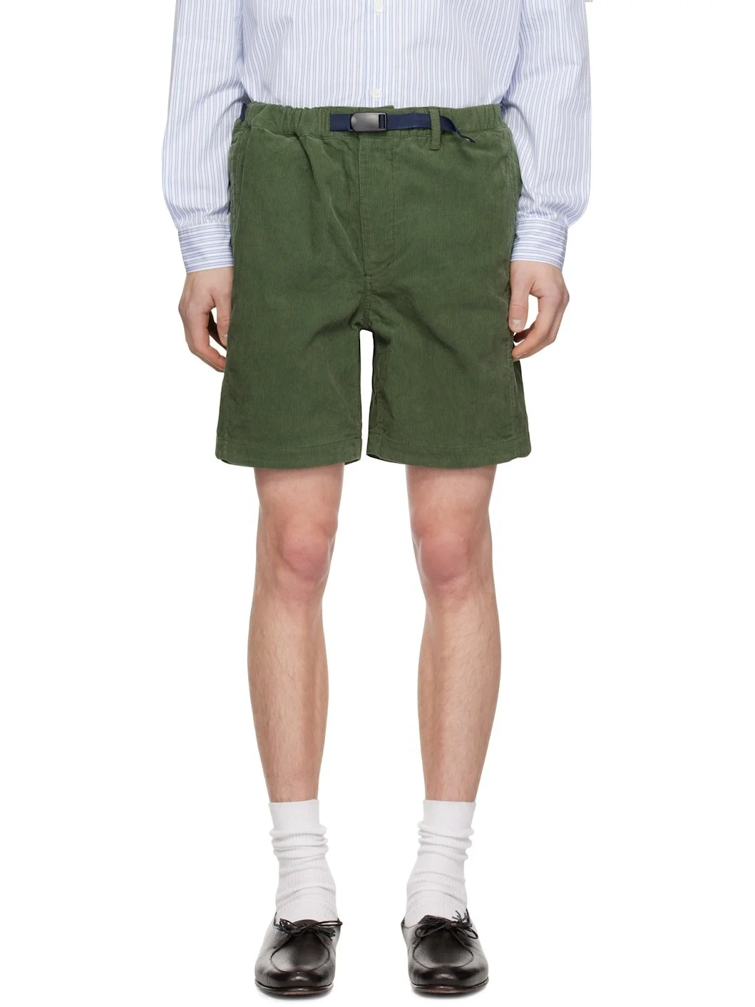 Cotton corduroy shorts. · Belt loops at elasticized waistband · Logo patch at integrated cinch belt · Four-pocket styling · Zip-fly Supplier color: Green 100% cotton. Made in Viet Nam 241972M193002