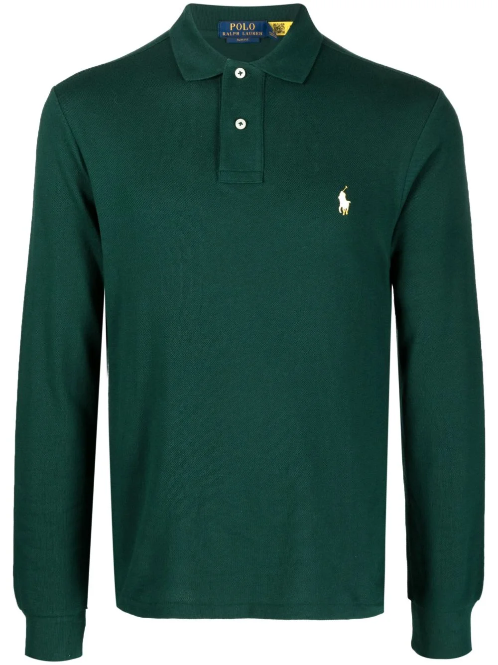 logo-embroidered polo shirt Highlights - Dark green - Cotton - Signature polo pony motif - Embroidered logo at the chest - Polo collar - Front button placket - Long sleeves - Straight hem Imported Composition Cotton 100% Washing instructions Machine Wash