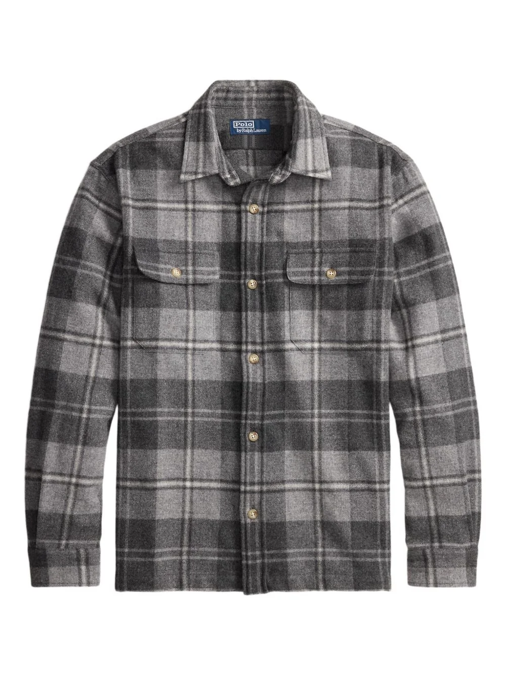 plaid buttoned wool work shirt Highlights - Grey - Plaid pattern - Buttoned placket - Straight collar - Long sleeves - Buttoned chest pockets Imported Composition Wool 100% Washing instructions Read Manufacturer Guidelines