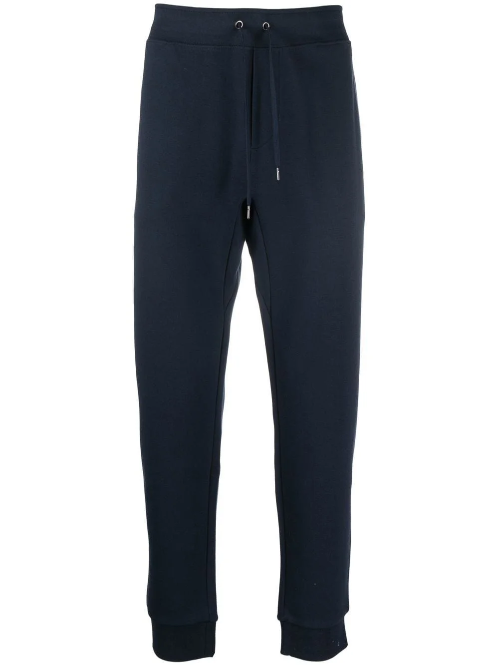 Polo Pony embroidered track pants navy blue cotton blend signature Polo Pony motif embroidered logo to the side elasticated drawstring waistband straight leg two side slit pockets rear patch pocket Imported Composition Cotton 67%, Polyester 33% Washing instructions Machine Wash