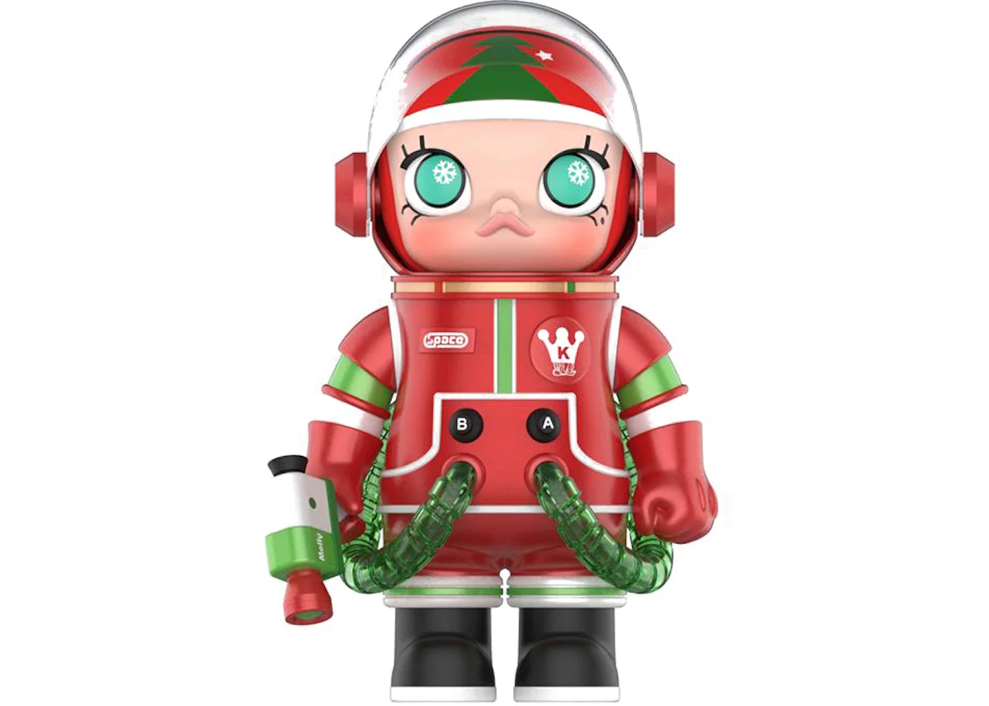 Cute and ready for action, this adorable Pop Mart Mega Collection Space Molly Christmas 400% Multi is part of the Space Molly series of dolls that is designed for mature collectors of pop culture toys. With impeccable craftsmanship and quirky features, Space Molly Christmas is a must-have for fans of the series. This 11-inch collectible toy is made from PVC and decked out in a Christmas-inspired space outfit. With red, green and mint being the primary colors, she has a moveable helmet and arms, a removable zap gun, an energy tank on her back and solid black boots. On her helmet is a Christmas tree icon. Her cute face has the signature pouty top lips and big eyes that are synonymous with Space Molly dolls. We love her empowered iconic attitude. Molly is durable and strong and will state the test of time that all collectors love. The Pop Mart Mega Collection Space Molly Christmas 400% (Edition of 50) Multi retailed at $179 when it was released. - Season FW21 - Product Line Mega Space Molly - Color Multi - Retail Price 179 - Dimensions 295mm - Featured false
