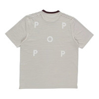 300049012GRY-SS / A5POPAW25_02-007/00/QUARRY - Horizontal stripe pattern in sage green and white - Contrasting burgundy ribbed collar - Short sleeves with regular fit - Soft cotton jersey construction - Subtle logo branding - Crew neck design Pop Trading Company Striped Logo T-Shirt delivers classic skatewear styling with premium comfort and durability. Crafted from soft cotton jersey in sage green and white horizontal stripes, featuring contrasting burgundy ribbed collar trim. The relaxed fit and subtle logo branding create an effortless streetwear essential for everyday wear.