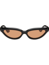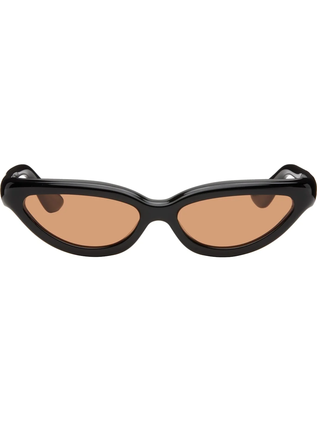 Handcrafted cat-eye cellulose acetate-frame sunglasses. · Brown lenses · 100% UVA/UVB protection · Integrated nose pads · Signature rivets at temples · Includes pouch · Size: 56.16 137 Part of the Bast collection. Supplier color: Black/Amber Acetate. Made in Japan 252458M134011