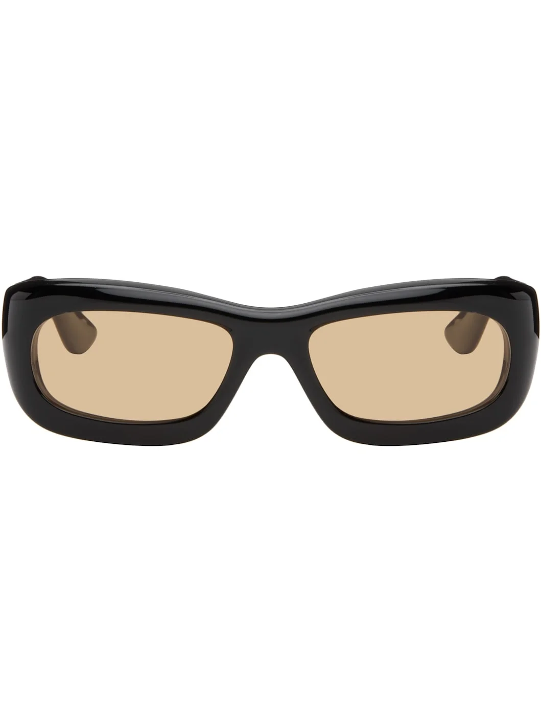 Handcrafted rectangular cellulose acetate-frame sunglasses. · Brown lenses · 100% UVA/UVB protection · Integrated nose pads · Signature rivets at temples · Includes pouch · Size: 56.19 137 Part of the Bast collection. Supplier color: Black/Amber Acetate. Made in Japan 252458M134020