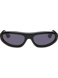 Handcrafted oval cellulose acetate-frame sunglasses. · Black lenses · 100% UVA/UVB protection · Integrated nose pads · Signature rivets at temples · Includes pouch · Size: 59.20 137 Part of the Bast collection. Supplier color: Black/Black Acetate. Made in Japan 252458M134014
