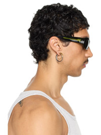 Handcrafted oval cat-eye semi-transparent acetate-frame sunglasses in green. · Green lenses · 100% UVA/UVB protection · Integrated nose pads · Rivets at temples · Exposed core wires · Includes pouch · Size: 53.21 135 Part of the exclusive SSENSE HEAT capsule. Supplier color: Green/Green Acetate. Made in Japan 252458M134002