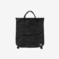 Porter-Yoshida & Co offers a casual and packable series made of nylon ripstop with its Porter Flex line. The Porter Flex 2Way Tote Bag mixes backpack and tote bag with its military-inspired look. Constructed from nylon ripstop fabric, the tote bag offers a spacious compartment that also can pack the bag itself for easy traveling and storage. - Porter Flex 2Way Tote Bag Black - Main zip compartments - Internal pocket - Two handles - Two adjustable and removable strap - 100% nylon ripstop - W42cm, H44cm, D21cm Article no. 856-07502-10 Gender: UNISEX Color: BLACK
