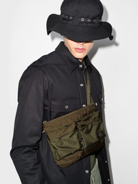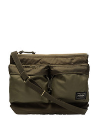 Flying Ace two-way shoulder bag Vintage military flight suits are the inspiration behind Porter-Yoshida & Co's 'Flying Ace' collection. This shoulder bag has been made in Japan from resilient nylon and features practical design details, like durable webbing trims, multiple pockets and a gunmetal-tone D-ring. Imported Composition Fabric 100% SIZE & FIT Model measurements Height 6 ft 2 in(1.87 m) Bust/Chest 36.41 in(92.5 cm) Hips 35.43 in(90 cm) Waist 29.52 in(75 cm) Measurement DEPTH 1.18 in(3 cm) HEIGHT 7.87 in(20 cm) WIDTH 9.84 in(25 cm)
